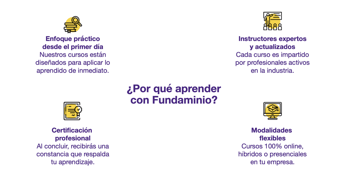 Fundaminio es una academia de formación ejecutiva que impulsa el crecimiento de profesionales, empresarios e instituciones educativas a través de cursos online e in company. Nos especializamos en integrar herramientas digitales, inteligencia artificial, análisis de datos y habilidades directivas para transformar el aprendizaje en resultados tangibles.